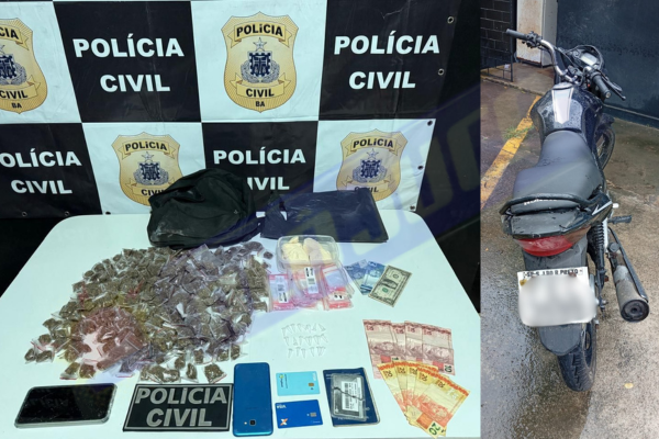 TRÁFICO EM CRUZ DAS ALMAS: Polícia Civil prende homem com drogas e moto usada para entrega
