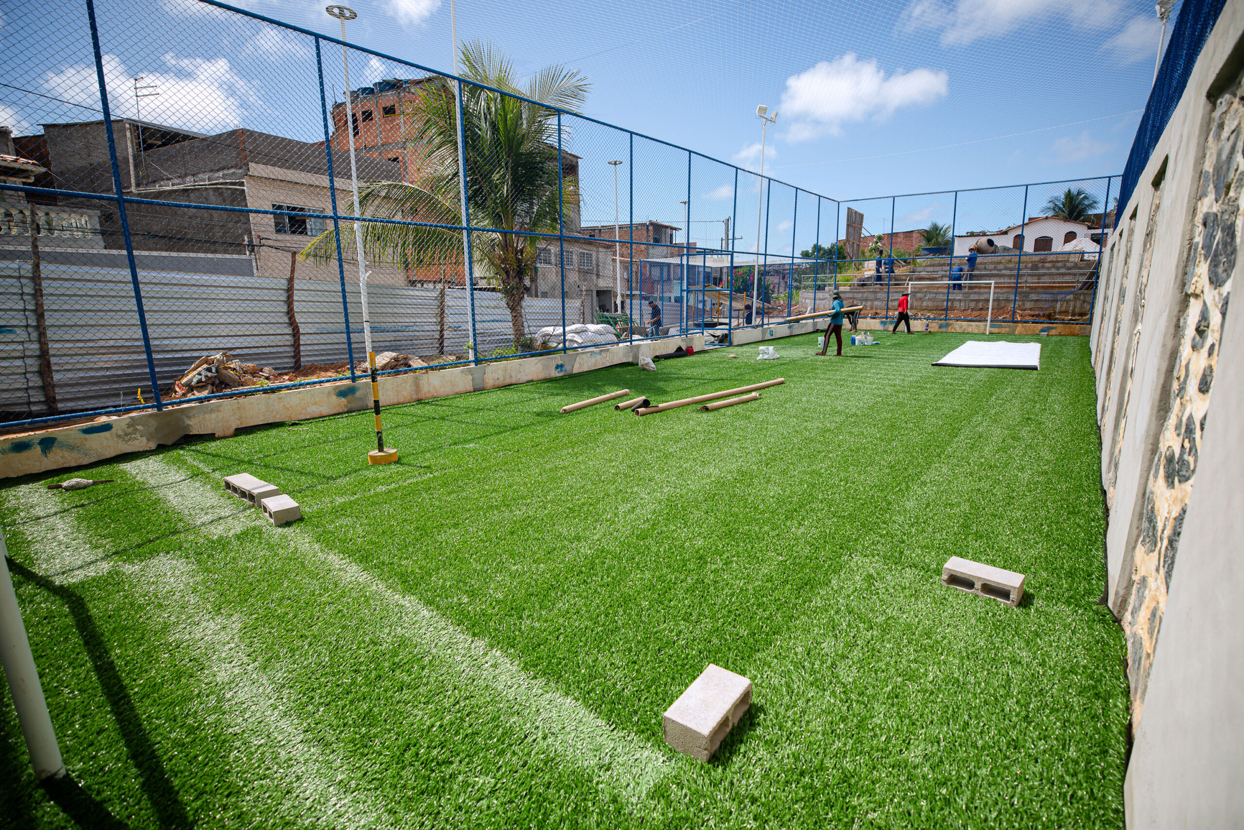 Prefeitura avança na implantação de campo de grama sintética na Praça Santa Bárbara